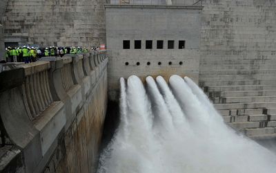 [/media-credit] POWER ON: A surge of water signals that President Jacob Zuma has opened the control valves during the opening ceremony of the De Hoop Dam, near Steelpoort in Limpopo in March. Picture: GCIS