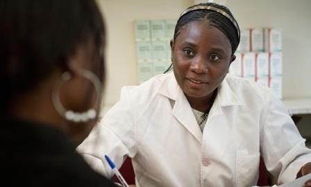 [/media-credit] A pharmacist prescribes medication to an HIV positive patient at a clinic in Kitwe, Zambia.