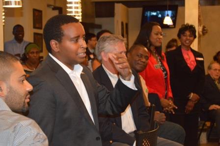 Speaking to an enthusiastic and cheering crowd of mostly African immigrants and business people, Neguse said, if elected, he would “make it easy for people to be able to cast their ballots.” Neguse, who was introduced by his father, a former school teacher from Eritrea, said he believes the right to vote is sacred.
